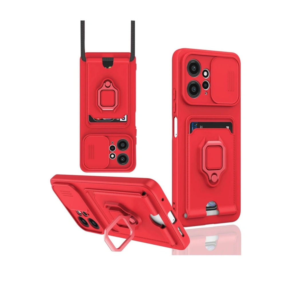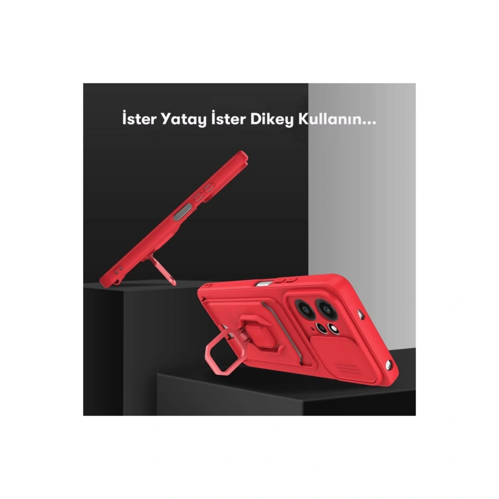 • Xiaomi Redmi Note 12 4g Kılıf Zuma Kartvizitli Yüzüklü Silikon - Kırmızı