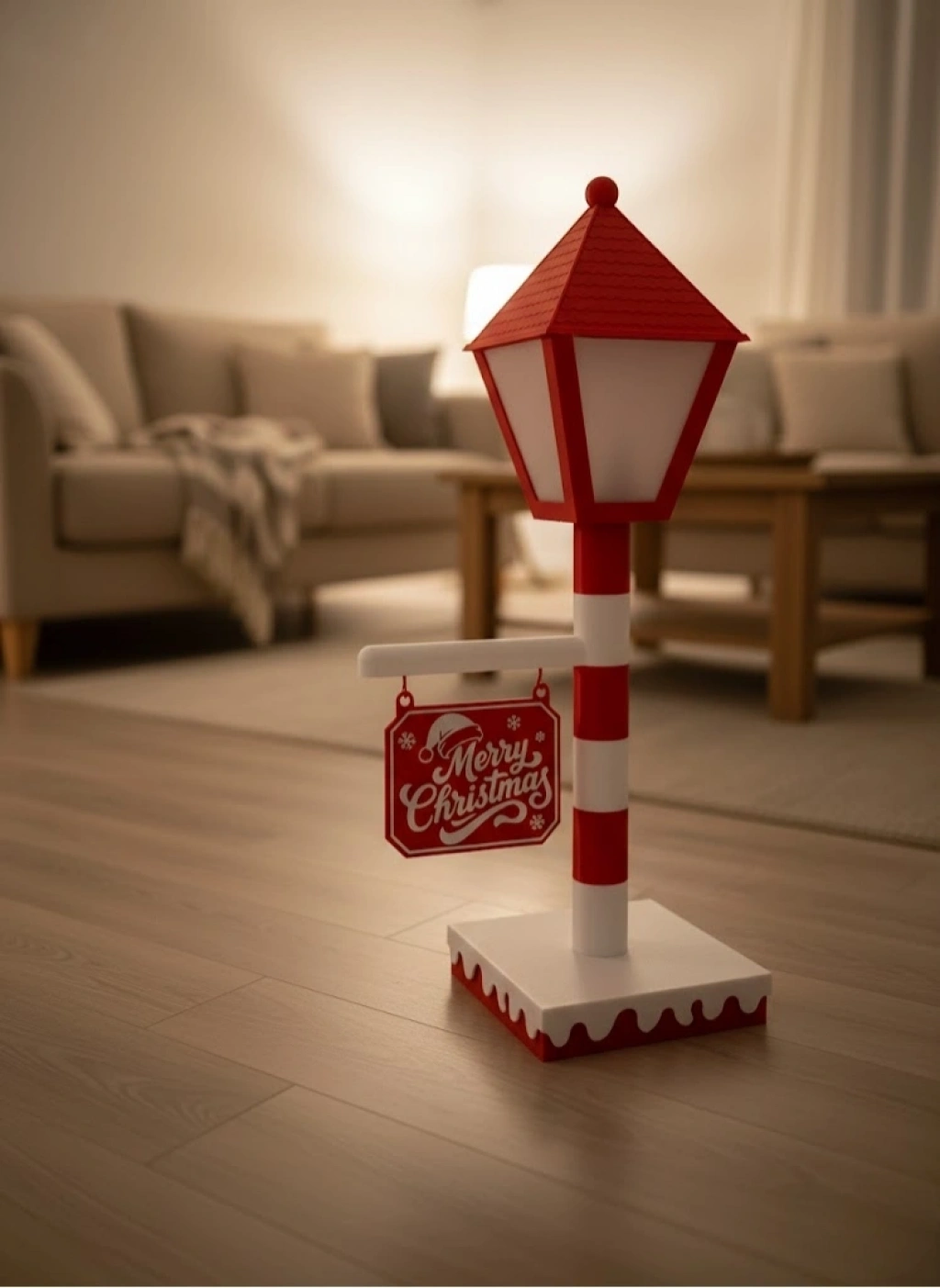 Yılbaşı ve Noel dekorasyonuna eğlenceli bir dokunuş eklemek isteyenler için tasarlanan Merry Christmas Tabelalı Lamba, sade ama dikkat çekici tasarımıyla öne çıkar. Kırmızı-beyaz renk uyumu ve klasik sokak lambası formu, sıcak ve davetkâr bir atmosfer yaratır.17×60 cm ölçüsüyle geniş alanlarda rahatlıkla kullanılabilir. At ile yükseltilebilir olması sayesinde farklı dekorasyon düzenlerine uyum sağlar. Loş ve yumuşak ışığı, özellikle akşam saatlerinde cozy bir yılbaşı ambiyansı oluşturur.Ev dekorasyonu, ofis süslemesi, mağaza vitrini veya yılbaşı fotoğraf köşeleri için ideal bir dekoratif aydınlatma ürünüdür.