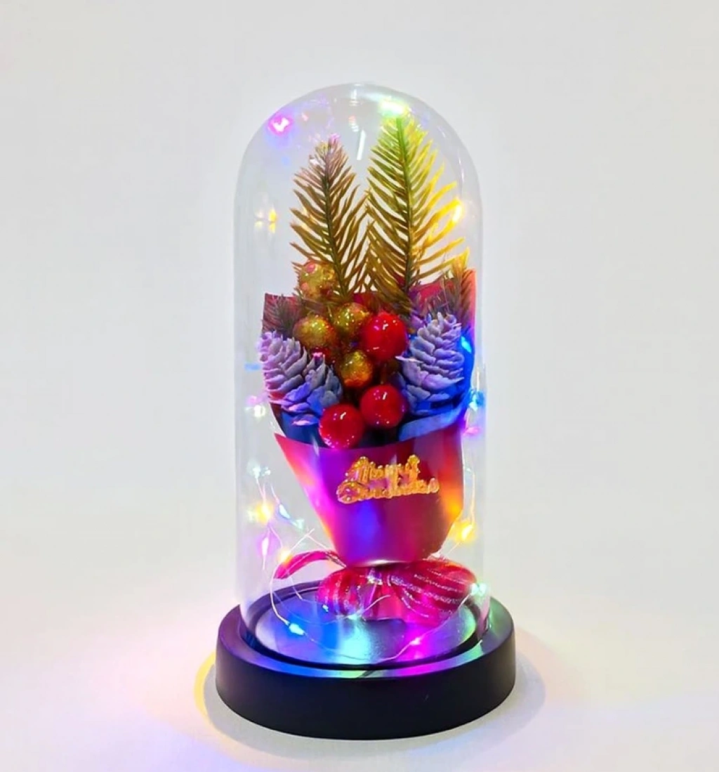 Yılbaşı Temalı Işıklı Dekoratif Cam Fanus Alk5081