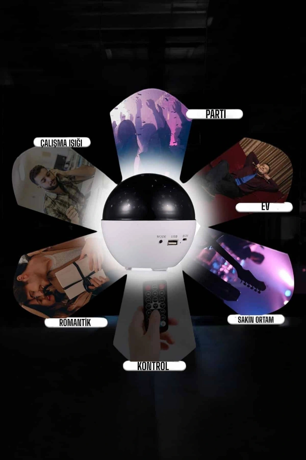• Yıldız Yansıtmalı Projeksiyon Gece Lambası Şarjlı Taşınabilir