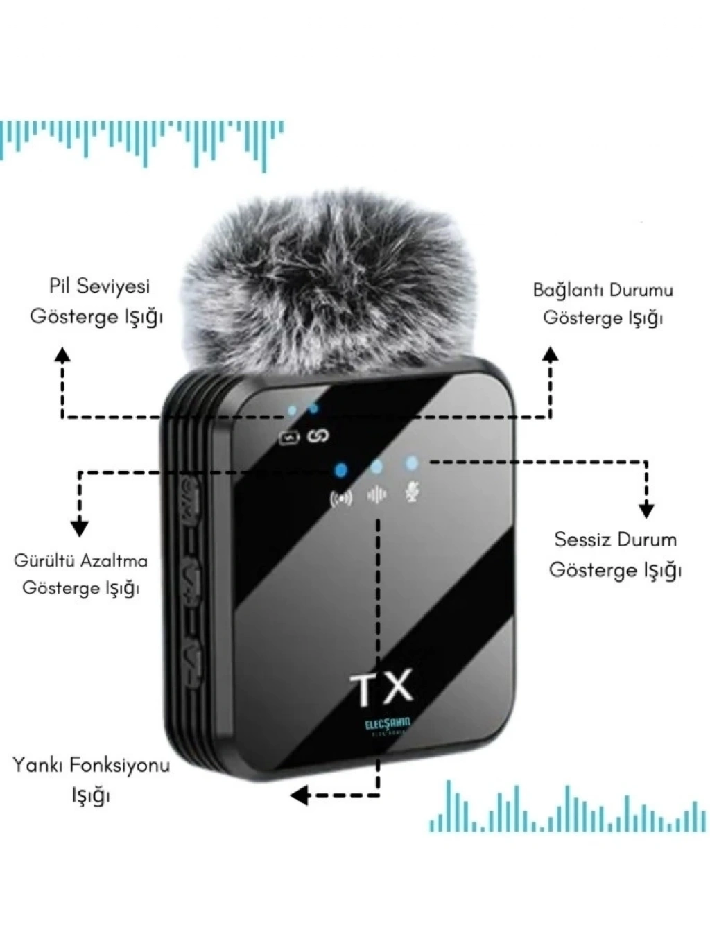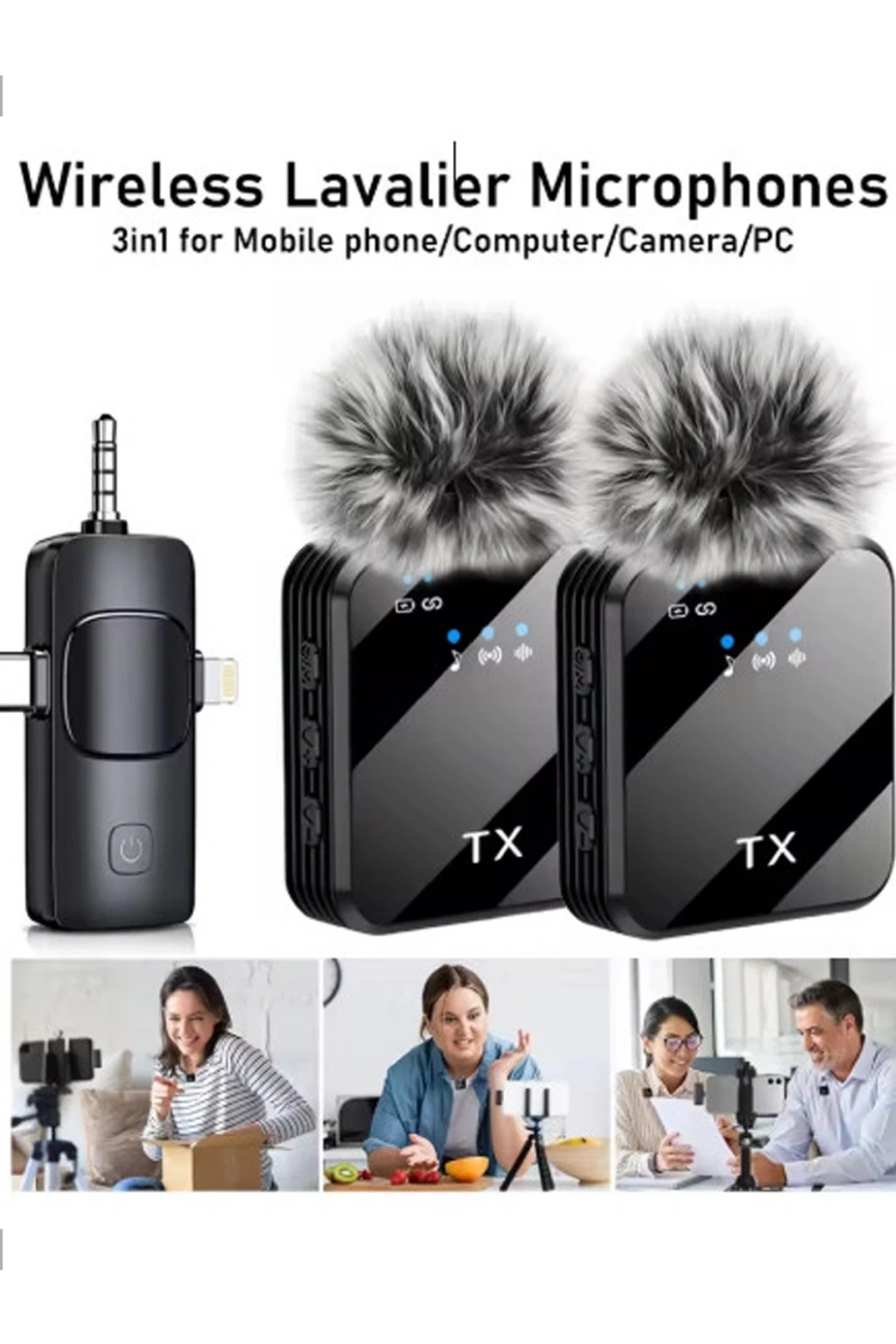 • Yüksek Kalite Profesyonel 3 In 1 Kablosuz Taşınabilir Yaka Mikrofonu Tüylü