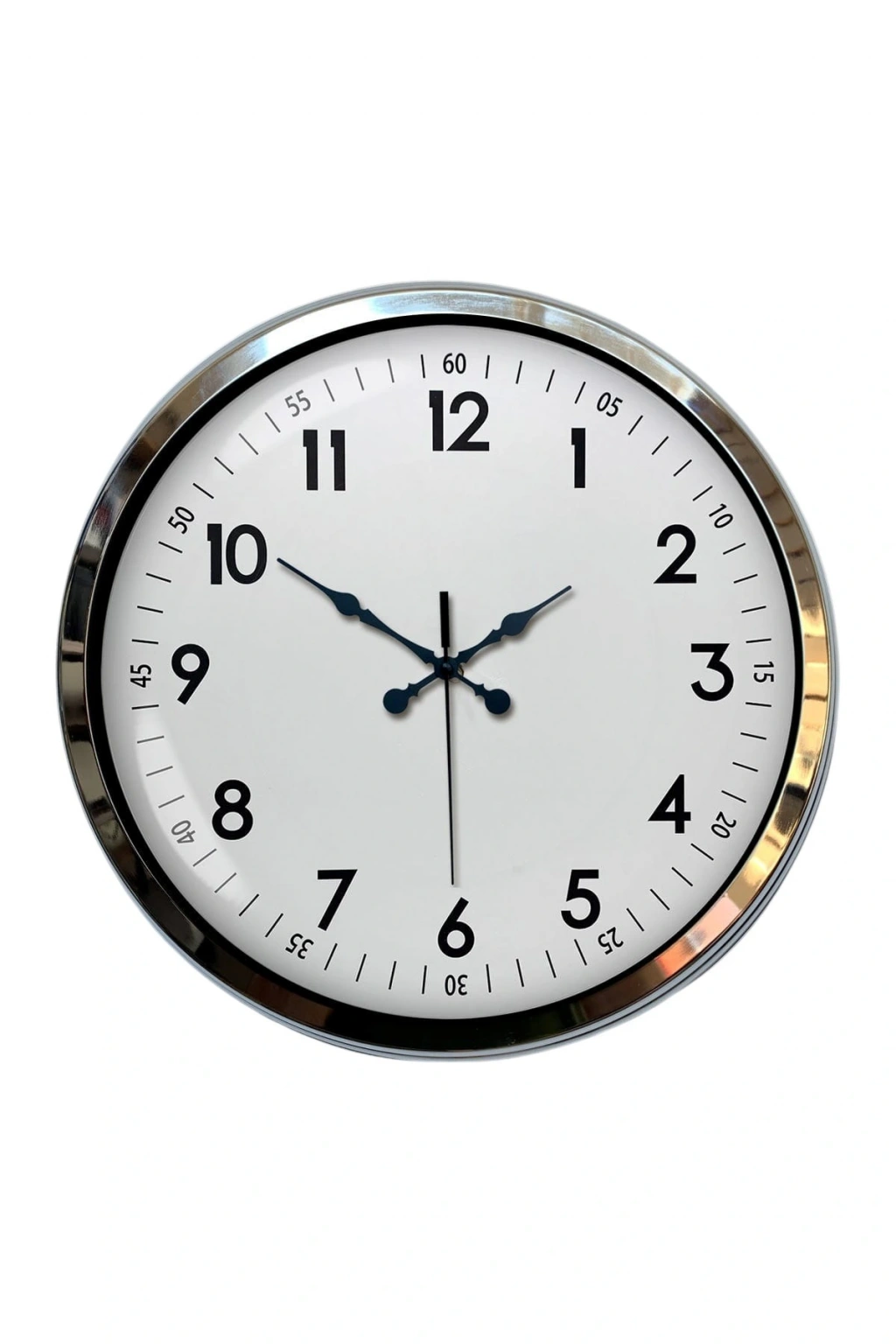 Modern çizgisi, sade tasarımı ve parlak krom çerçevesi ile dikkat çeken 40 cm Krom Metal Duvar Saati, hem ev hem de iş yerlerinde zamana şıklık katmak isteyenler için ideal bir dekorasyon tamamlayıcısıdır. Beyaz kadran üzerindeki net siyah rakamlar, yüksek okunabilirlik sunarken; krom çerçevenin parlak yapısı saatin bulunduğu ortama zarif ve modern bir hava katar.